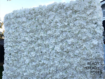 Want to give your photo booth expierence that little extra. You can add a flower wall rental as a booth backdrop.